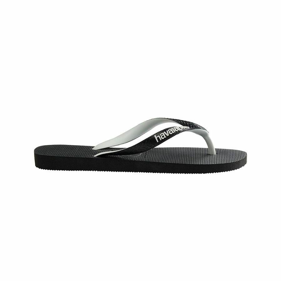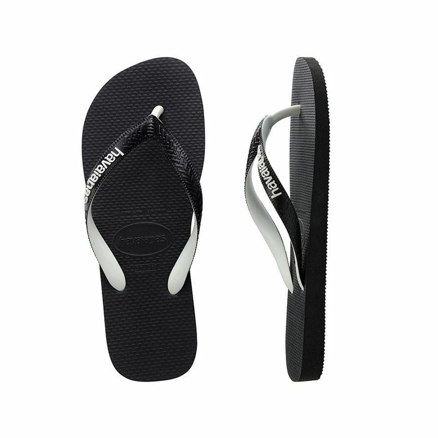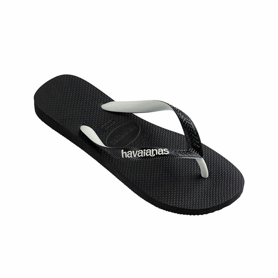 Havaianas Top Mix Black/Black Thongs. Mix it up this summer in our new season thongs for men. Classic Top black Havaianas with matching two-tone black and white Top straps and a contrast white Havaianas rubber logo to complete the pair.